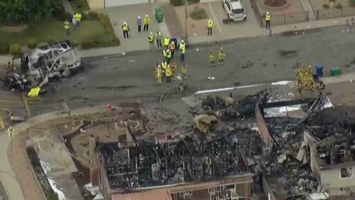 अमेरिका के कैलिफोर्निया के सैन डिएगो उपनगर के रिहायशी इलाके में एक विमान हादसे का शिकार हो गया। इसमें दो लोगों की मौत हो गई, जबकि दो अन्य लोग घायल हो गए। इसके अलावा जिस मकान पर विमान गिरा उसके आसपास के करीब 10 घरों में आग लग गई। वहीं, एक ट्रक समेत कई गाड़ियां जलकर राख हो गई। घटना के बाद रिहायशी इलाके में चीख पुकार मच गई। लोग घरों से निकलकर बाहर भागने लगे। हालांकि, फायर ब्रिगेड की टीम मौके पर पहुंचकर जल्द ही हालात पर काबू पा लिया।